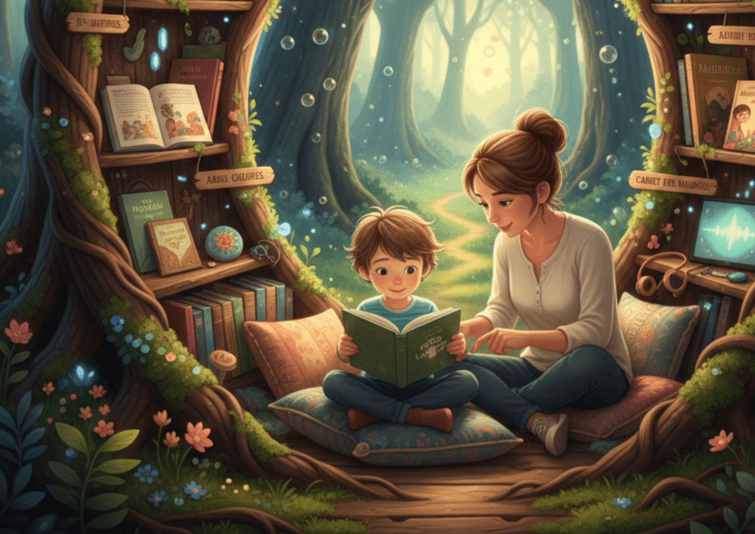 Bibliomousse est une bibliothèque de +30 histoires guidées qui aide les enfants à :